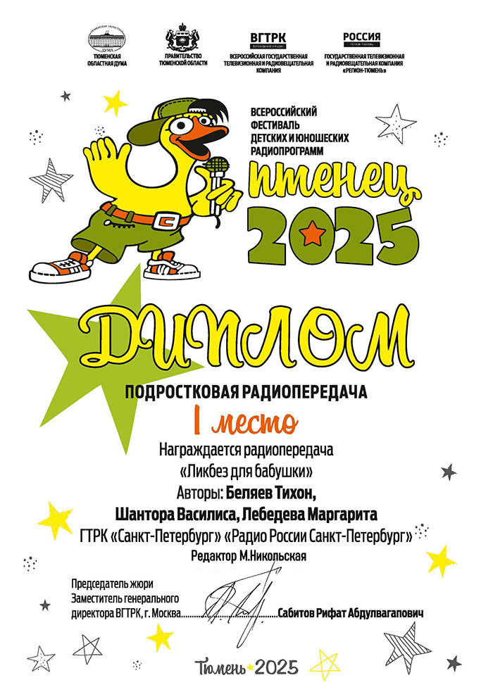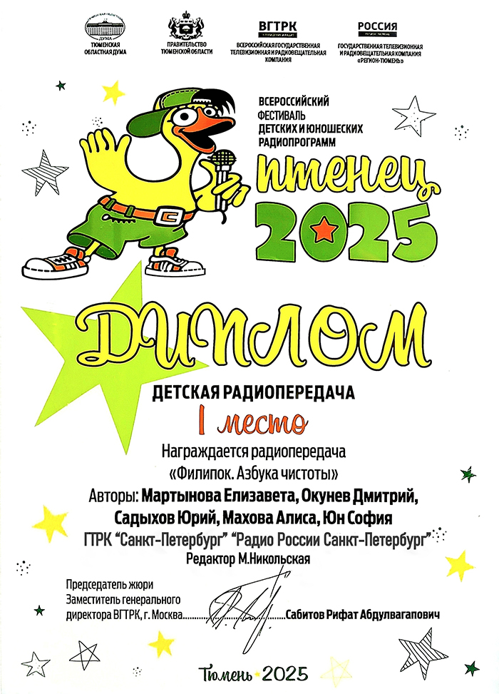 На Всероссийском фестивале детских и юношеских радиопрограмм "Птенец",