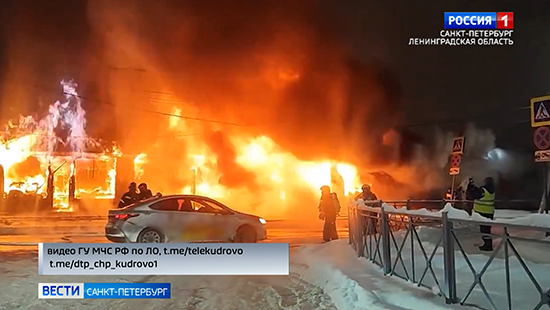 Сгорел дотла. В Кудрово накануне поздно вечером тушили торговый павильон, в котором располагалась шаверма, пункт выдачи заказов и шиномонтаж. На этих кадрах видно, что пламя быстро распространилось и охватило все здание еще до прибытия спасателей.