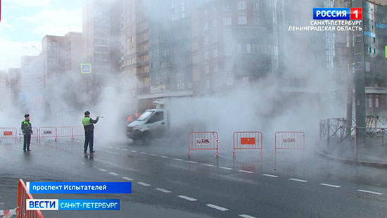 На проспекте Испытателей прорвало трубу с горячей водой