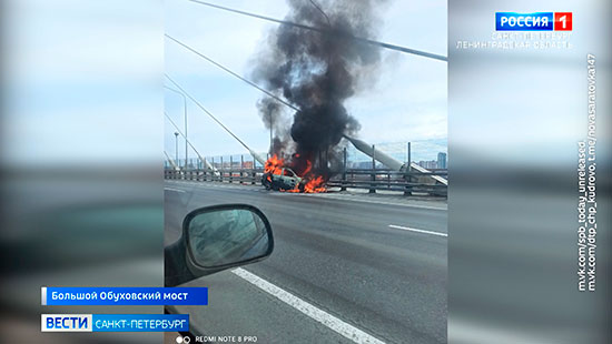 На Большом Обуховском мосту после ДТП сгорела машина